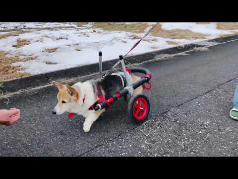 内股にクッションが挟まることで足を広げる感覚を思い出したらしく、自力歩行中に今まではくっついていた両後ろ足が開くように!