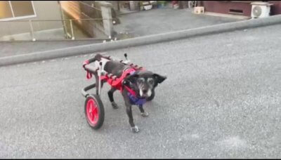 飼い主様のお言葉では、ももちゃんは車椅子に慣れるまでに時間が掛かってしまいましたが、慣れてからは、ももちゃんが走る事を分かったようで、お散歩が一段と楽しくなった気がするとの事でした。