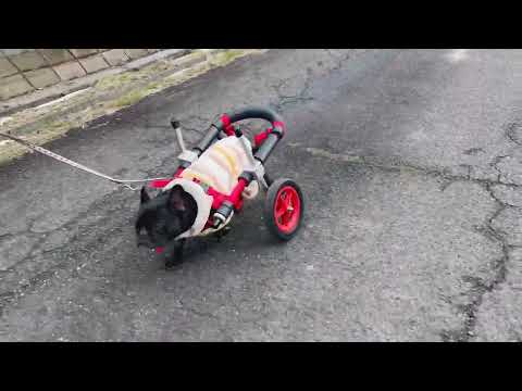 車椅子が届いてからは、あんなに元気のなかった自慢のドーナツシッポもくるんと上がって、毎日楽しそうに歩いています。